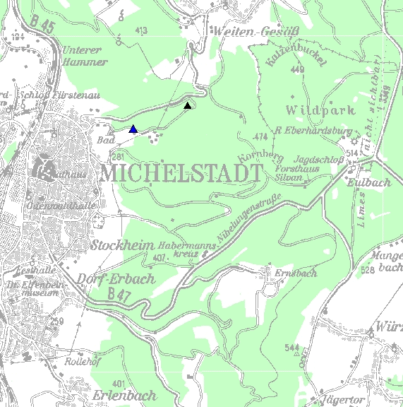 anklicken der Punkte für Grundwassermessstellen oder Dreiecke für Quellen.